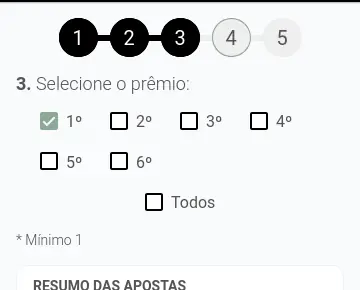 Você escolhe um número com 4 algarismos, de 0000 a 9999 no 1º, 2º, 3º, 4º, 5º e 6º prêmio, podendo selecionar todos, somente um ou um intervalo entre eles (potencial de retorno aumenta ou diminui de acordo com a quantidade selecionada).